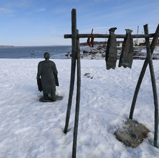 In this place, we found Granma Olga as she stared out to sea with her salmon drying on a rack next to her. I bet she didn't expect to see large container ships at the Port of Alaska in her time!
