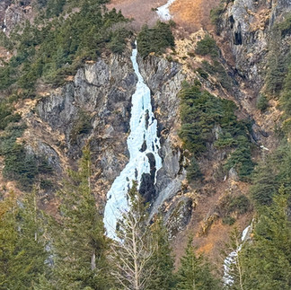 The drive to Seward is beautiful. It started out somewhat sunny, but as the day progressed it became cloudier and windier too. The highway is flanked by tall peaks and the waterway to its right. In the summer, one can see otters, belugas, and even salmon.