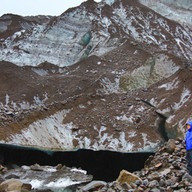 Another interesting stop was at Fjallsjokull. Here the wind was incredible strong and the rain sideways. But we braved it to climb up the berm at the base of the glacial lake, to see the edge of the glacier and the floating icebergs. This truly was a sight to see.